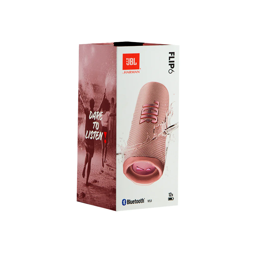 Lleve sus canciones mientras viaja con el potente JBL Flip 6, nuestro altavoz Bluetooth te acompaña a cualquier parte. ¿Mal tiempo? No es para preocuparse, con su diseño a prueba de agua y polvo, puede disfrutar de nuestro sonido característico incluso con lluvia o sol.